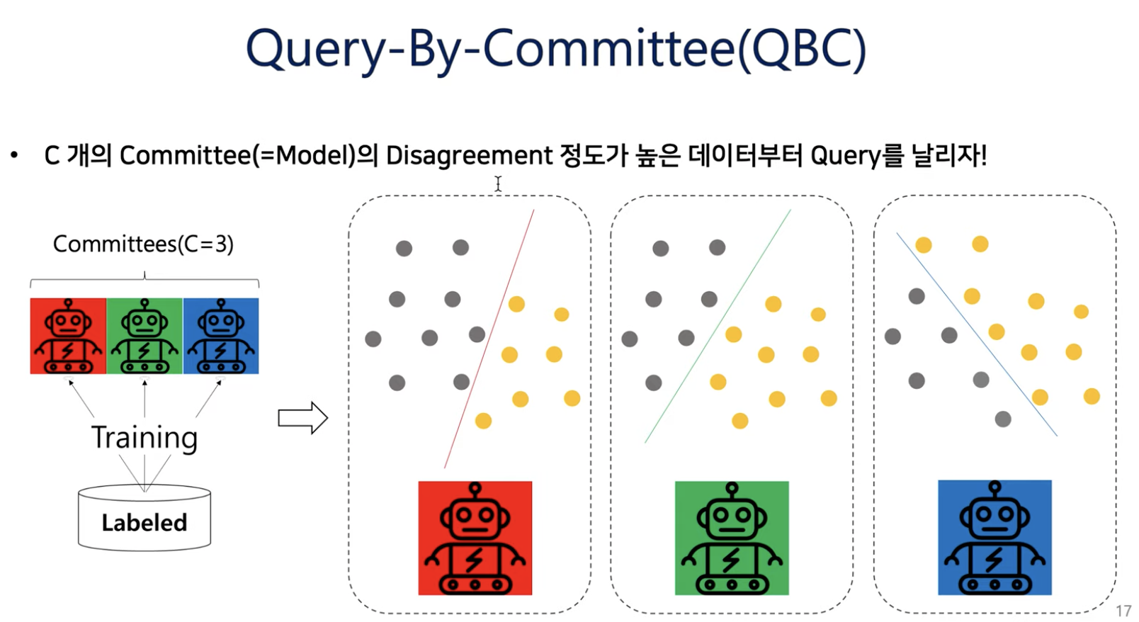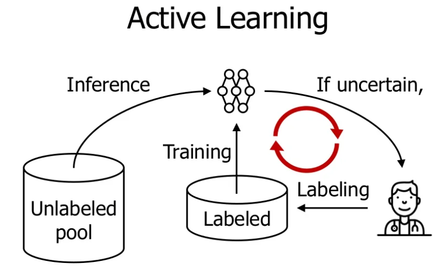- 라벨이 되지 않은 데이터 중 모델에게 도움이 되는 데이터를 선별