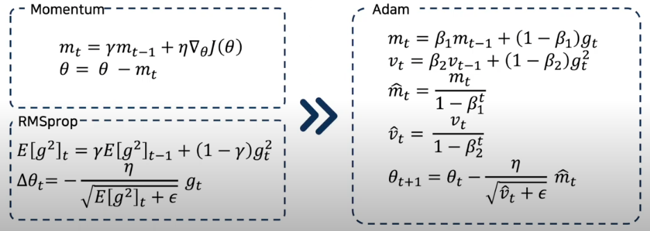 - adagrad의 extension인 RMSprop가 학습 속도가 급격히 작아니는 것을 방지