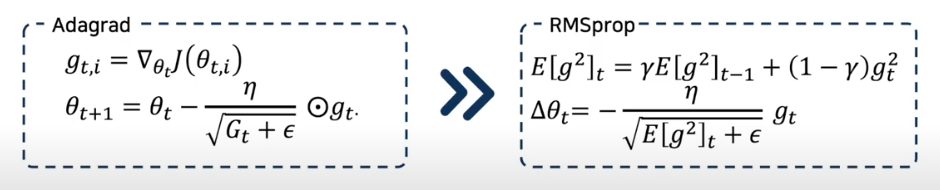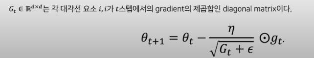 - gradient 합계는 모든 과거 gradient 제곱의 감쇠 평균으로 재귀적으로 정의