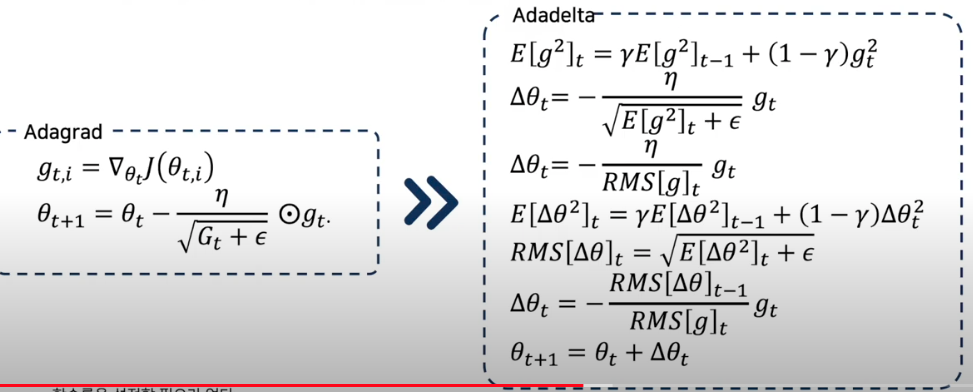 - Adadelta와 RMSprop는 Adagrad의 학습 속도가 급격히 감소하는 문제를 해결해야하기 때문에 거의 동시에 독립적으로 개발