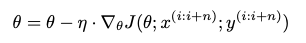 - 목적 함수의 기울기 와 반대 방향으로 parameter 쎄타를 업데이트하며 목적 함수 \(\triangledown\theta\)를 최소화 하는 방법이다