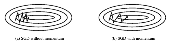 - Momentum은 gradient가 같은 방향을 가리키는 차원에 대해 증가하고 gradient가 방향을 변경하는 차원에 대한 업데이트를 줄인다
