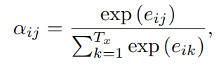 \(e_{ij}\)는 alignment model이며, j번째 input 주변의 정보들이 얼마나 i번째 output과 적합한지에 대한 점수를 나타내고 있다.