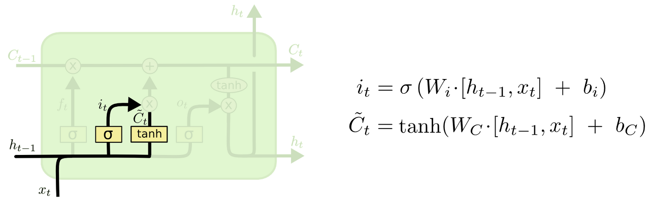 - 새로운 정보가 cell state에 저장이 될지 결정하는 게이트