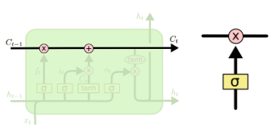 LSTM의 핵심은 다이어그램 상단을 가로지르는 수평선의 셀 상태이다.