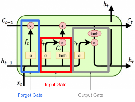 요약하면 장단기 메모리(Long Short-Term Memory), LSTM은 은닉 층(hidden state)의 메모리 셀에 입력 게이트(input gate layer ), 망각 게이트(forget gate Layer ), 출력 게이트(output gate layer )를 추가하여 불필요한 기억을 지우고, 기억해야할 것들을 정한다.