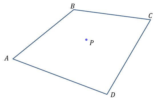 그런데, 위의 보간 방법은 원래의 데이터의 위치가 직사각형을 이룰 경우에만 적용할 수 있는 방법이다. 만일 아래 그림처럼 임의의 형태의 사각형에서 사각형 내부를 보간하고자 할 때에는 어떻게 해야 할까?