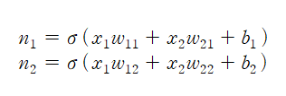 - 위 두 식의 결과값이 출력츠응로 보내지며, 출력층에서는 시그모이드 함수를 통해 y값이 정해진다