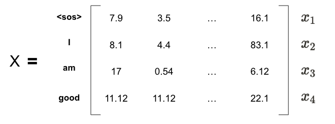 디코더에 입력 문장을 입력할 때 입력 문장을 임베딩(출력 임베딩 행렬)으로 변환한 후 위치 인코딩을 추가해 디코더에 입력하는 것을 알 고 있다. 디코더의 입력 행렬을 X라고 하자